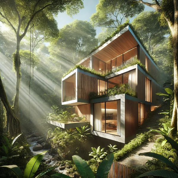 What's particularly interesting with DALL-E is its ability to iteratively create a prompt, all in natural language. So, you can start by describing the broad outlines of the building or scene you want to visualize. Then, for example, request to replace concrete with wood.