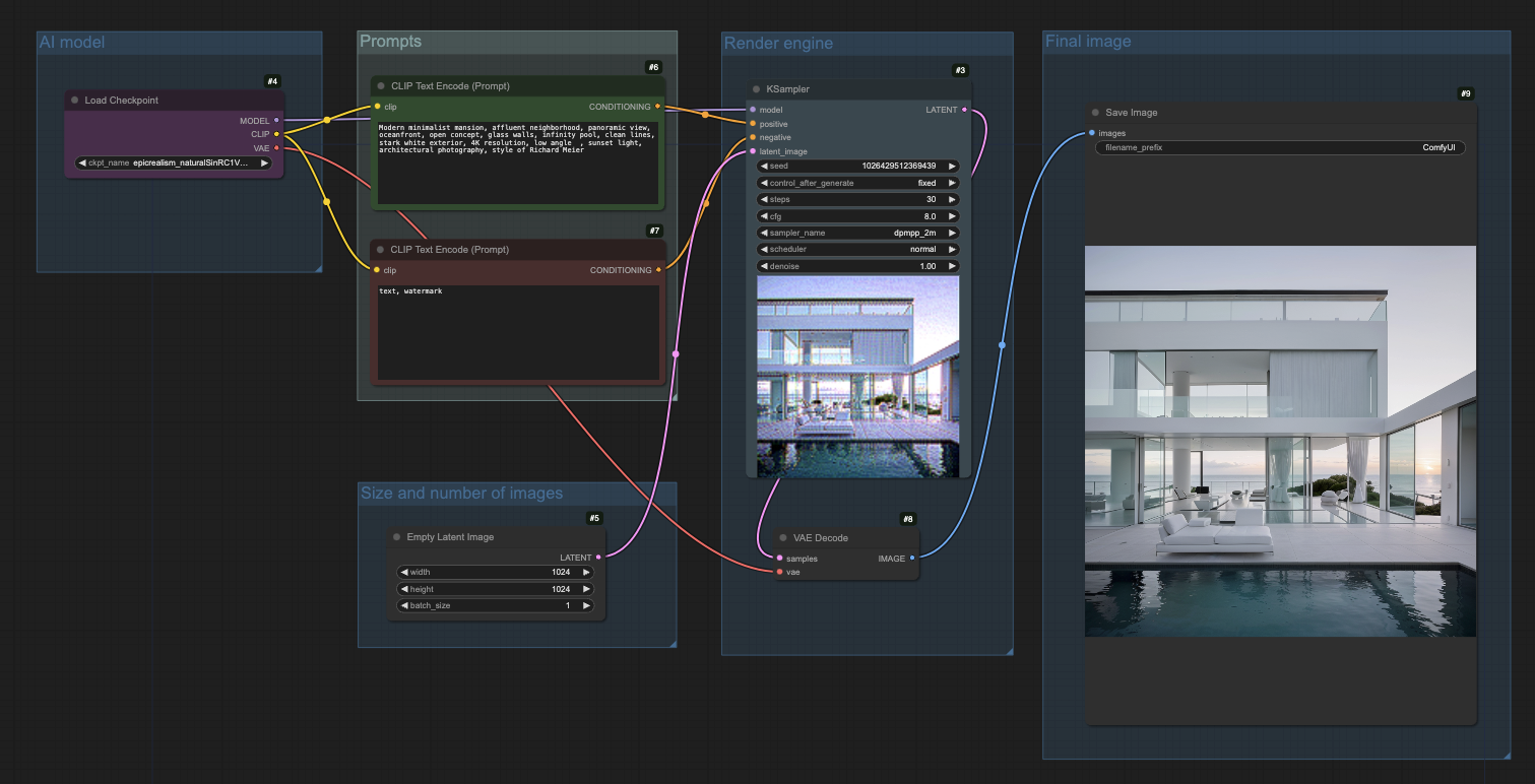 Beyond AI image generation, thanks to ComfyUI, the modular interface for Stable Diffusion, you can create varied production scenarios that can save a lot of time on visual production tasks.