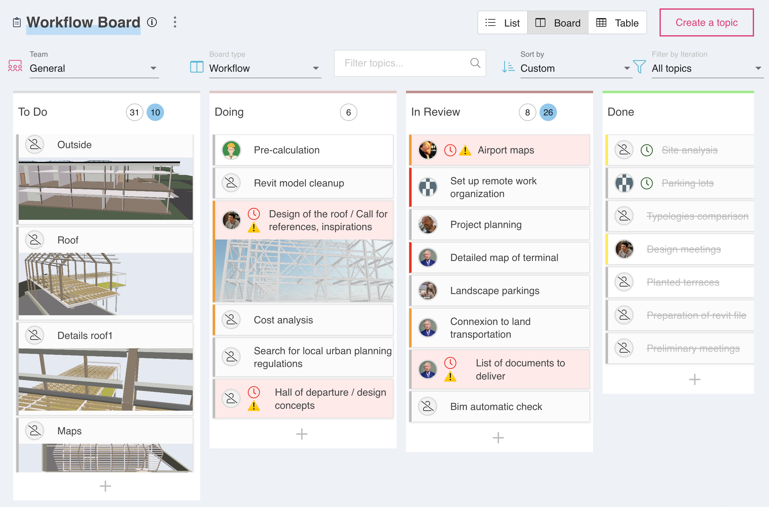 Bricks have had a Kanban board for a few years, as visual management is part of our DNA. As an architect, engineer, or BIM manager, we are used to working on 3D models and sharing visualisations of the future building. So, using a visual representation of the workflow for tasks should sound quite natural. Until now, this Kanban board only showed text.