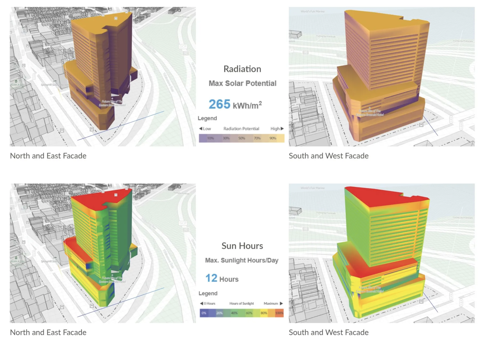 - Shadow analysis: How your building is casting shadows and being shaded by other buildings