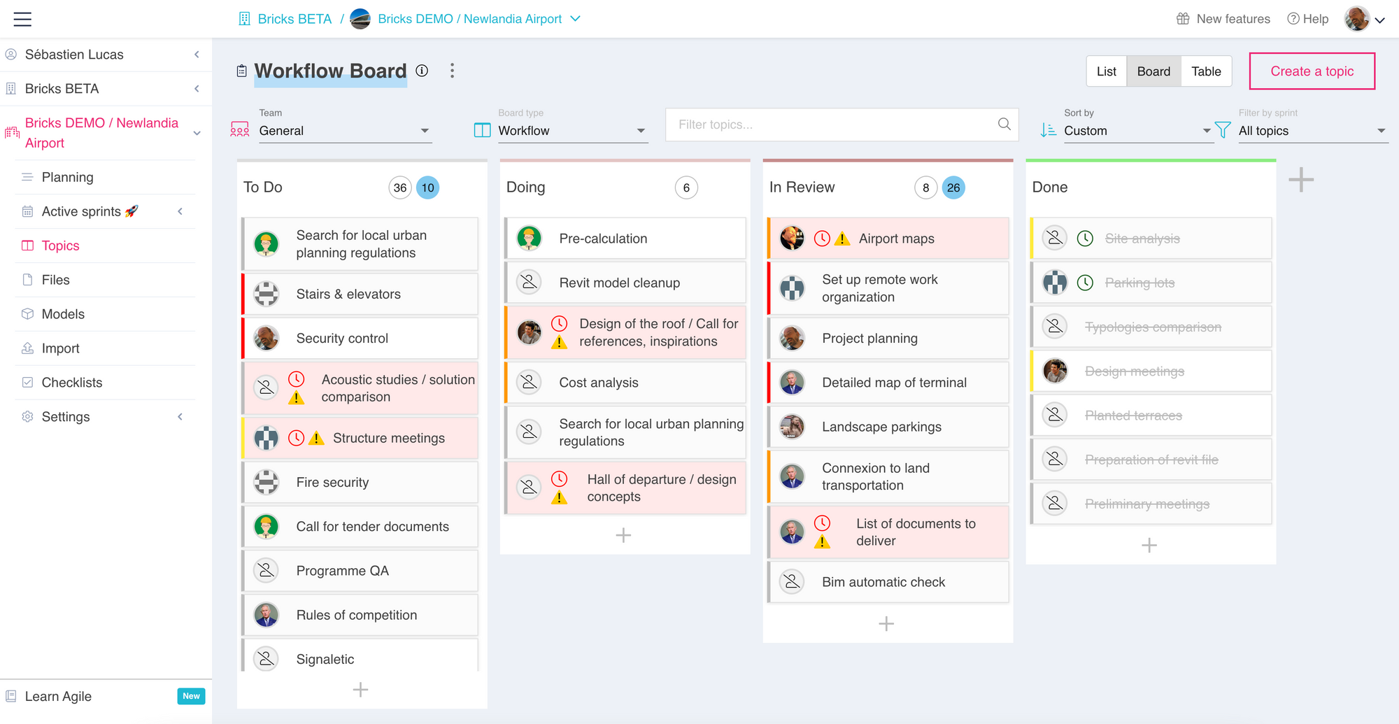 With Bricks you can manage the tasks visually, share files and 3D models in IFC format (BIM) and give feedbacks in the 3D viewer directly.
