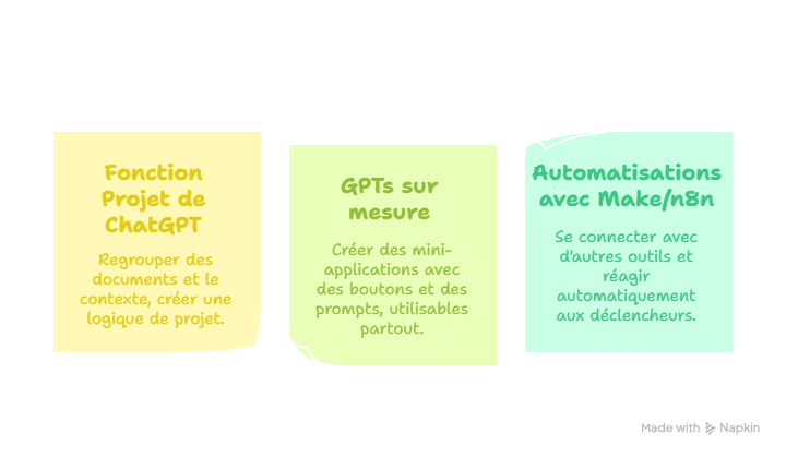 1️⃣ Utiliser la fonction “Projet” de ChatGPT (super pratique pour regrouper documents + contexte) adapté pour créer une logique projet