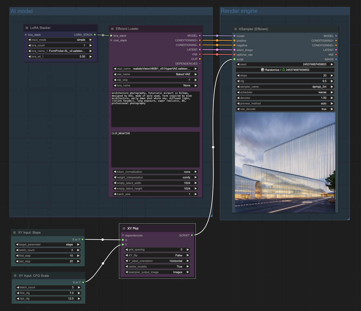Un autre nœud intéressant de cette collection est la série XY qui permet de créer des grilles en faisant varier des paramètres, par exemple le nombre d'étapes (steps) ou le CFG (Guidance scale) pour voir en une fois quel est le bon réglage.